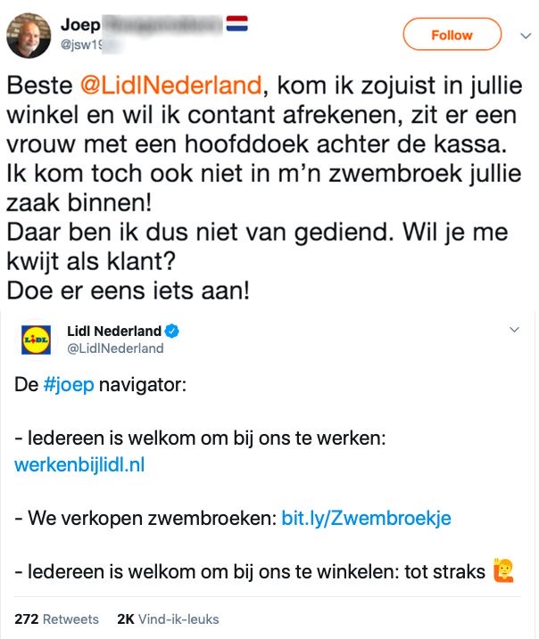 10. Lidl laat zien dat zij super om kan gaan met racistische reacties en leert deze klant effe de les.