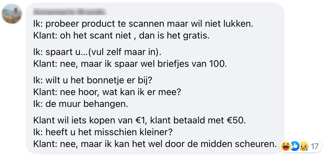 1. Als kassamedewerker gaat het leven, wat flauwe grapjes betreft, absoluut niet over rozen.