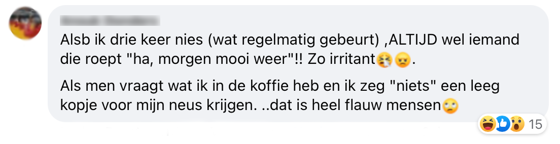 5. Eén ding is zeker liever deze opmerkingen, dan een kop koffie waar drie keer in is geniest.