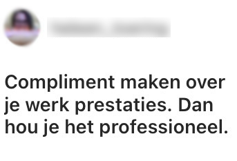 Aan de hand van een eerder artikel, vroegen we hoe jullie denken over complimenten op de werkvloer. Jullie deelden massaal waar jullie grens ligt. De afgelopen weken hebben aan de hand van de aflevering van BOOS veel gesprekken plaatsgevonden over seksuele intimidatie door collega’s en werkgevers. Is het beter om elkaar alleen nog vakinhoudelijke complimenten te geven, of moet een positieve opmerking over iemands uiterlijk ook gewoon kunnen? Bij welke opmerking ga jij op je strepen staan?