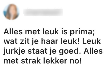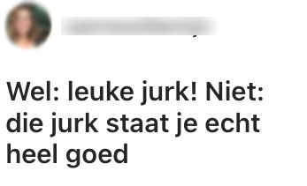 3. Toch vinden anderen weer dat een compliment over een kledingstuk wel kan. Je moet alleen wegblijven van opmerkingen over het lichaam.
