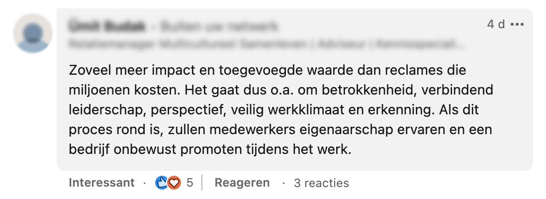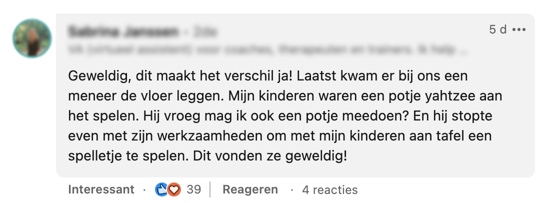 4. Door het bericht van Chantal worden veel mensen aan het denken gezet.