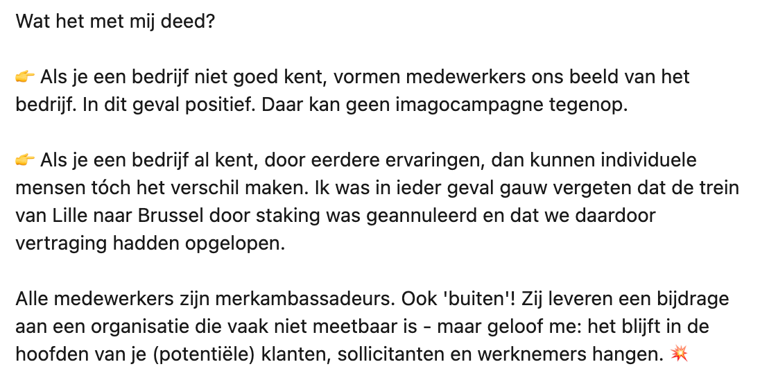 2. Ze legt uit hoe één medewerker van een bedrijf een groot verschil kan maken.