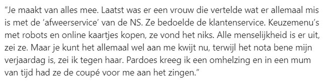 6. Dit soort gesprekken blijken vaker plaats te vinden tijdens het werk van een conducteur.