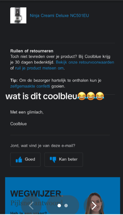 1. Jord ontvangt deze mail van Coolblue, die een hoop vragen oproept.