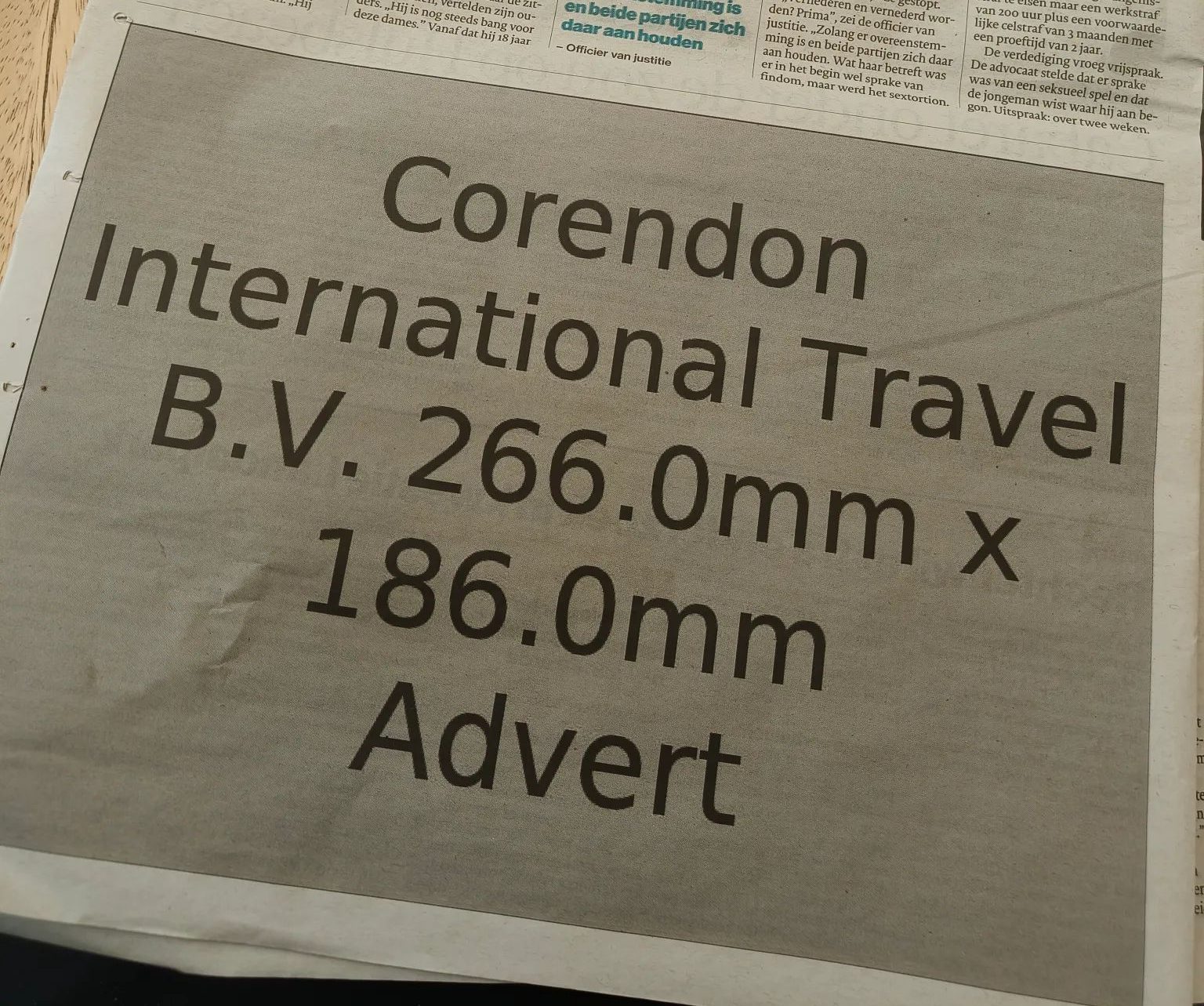 Hoe minder dagen je nog hoeft te werken tot je vakantie, des te minder zin je hebt om al die laatste taken af te ronden. Maar ja: de laatste loodjes wegen het zwaarst. Het lijkt erop dat medewerkers van Corendon en de krant Tubantia ook al met hun hoofd bij hun vakanties zaten. Lou spot namelijk iets héél opvallends in een advertentie in deze krant uit Twente.