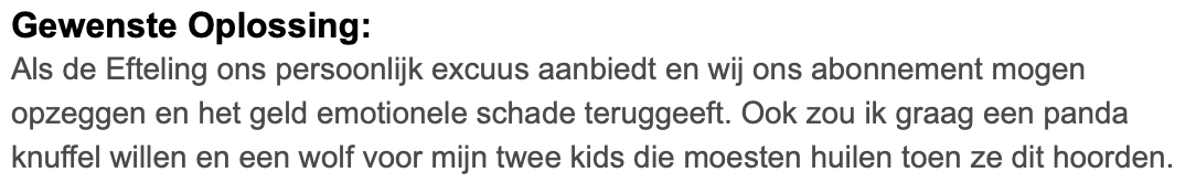 16. De klacht is terecht, de oplossing bijzonder fijn.