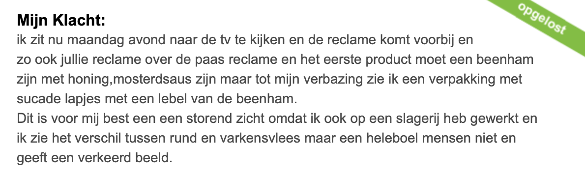 18. Laten we ook nog even kijken naar klachten buiten de supermarktwereld.