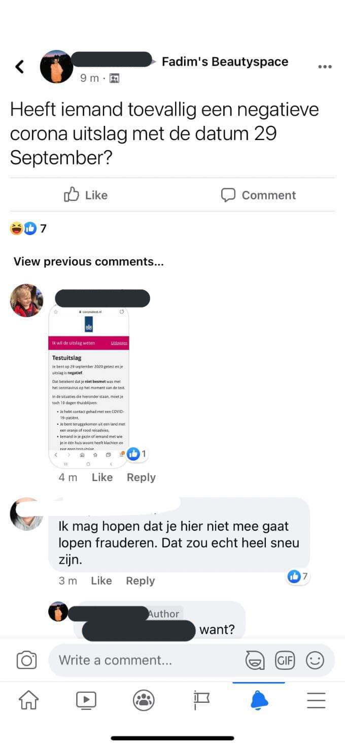 corona coronatest discussie facebook facebookgroep twitter