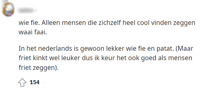 Er barsten regelmatig discussies uit op het internet over de correcte uitspraak van bepaalde namen en woorden. Is het nu ‘Lie-del’ of ‘Li-ddel’, ‘Lee-vies’ of ‘Ley-vais ‘en wanneer we het over gesneden aardappelen hebben, hebben we het dan over ‘friet’ of juist over ‘patat‘? Om het allemaal nog ingewikkelder te maken is er nu ook onenigheid over ‘wifi’ en daar hebben deze Reddit-gebruikers het volgende op te zeggen.