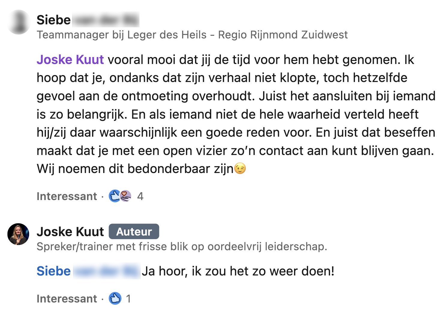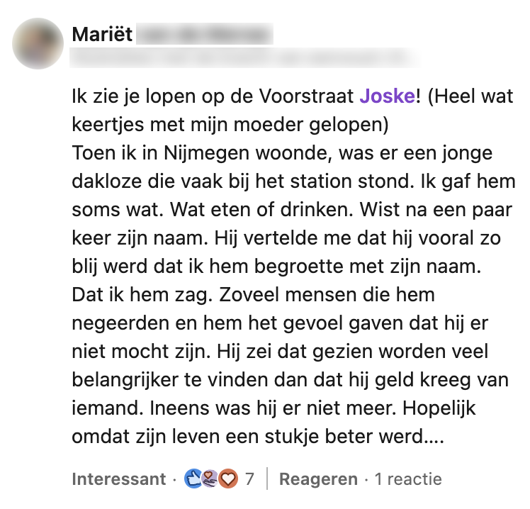 1. Joske neemt de tijd om met de dakloze man in gesprek te gaan.