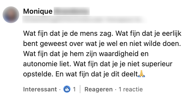 6. Monique kan de actie van Joske met slechts één woord omschrijven: fijn.