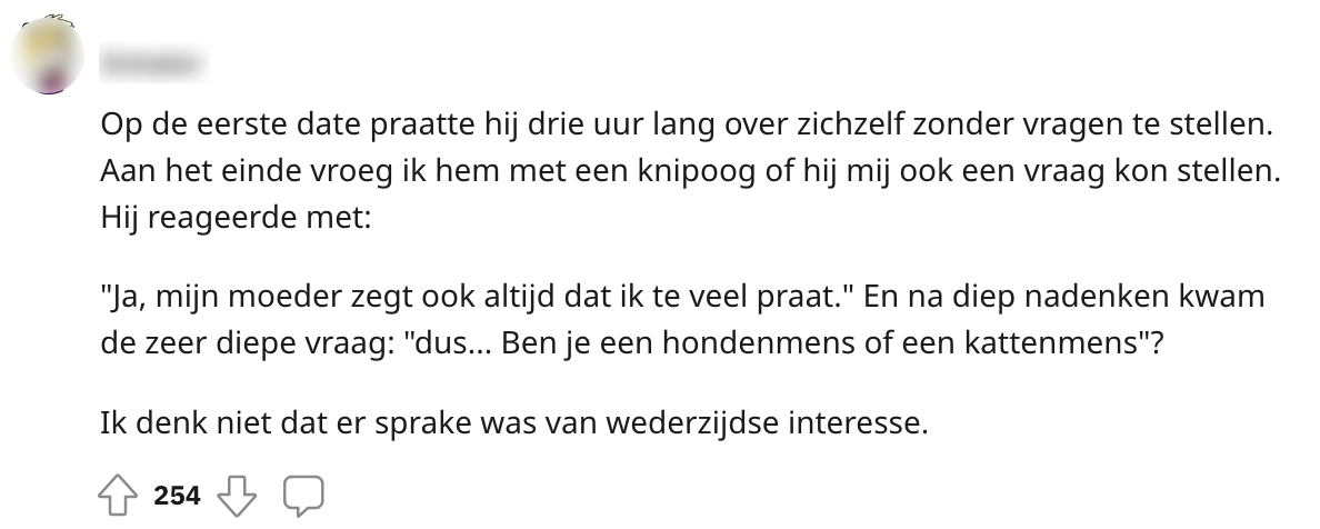 Wanneer je aan het begin van je nieuwe en spannende date-avontuur staat, kan alles effe door een roze bril gezien worden. Maar die roze wereld kan ook vrij abrupt beëindigd worden door bepaalde alarmbellen die wél heel hard gaan rinkelen. De volgende Reddit-gebruikers lieten zich dan ook lekker gaan in het aankaarten van regelrechte date dealbreakers: