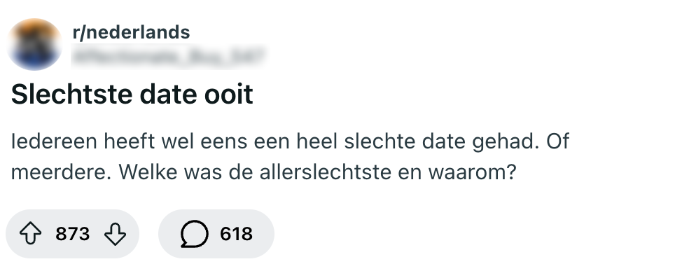 1. Deze Reddit-gebruiker is op zoek naar de verschrikkelijkste dates die Nederlanders ooit ervaren hebben.
