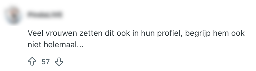 Mensen met gigantische vissen in hun armen, spiegelselfies in de sportschool, groepsfoto’s op Lowlands en slechte openingszinnen: als je al een tijdje rondzwerft in de wondere wereld van datingapps, ben je ze allemaal al tientallen keren tegengekomen. Originaliteit is vaak ver te zoeken. Een Nederlander is lekker aan het swipen en merkt op dat veel singles precies dezelfde uitspraak op hun profiel hebben staan. Diegene is nieuwsgierig naar het verhaal achter deze veelvoorkomende bio en vraagt Reddit om raad.