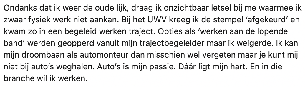 4. Hoewel zijn trajectbegeleider bij het UWV dacht dat Dave wel aan de lopende band kon werken, weigerde Dave zijn passie voor auto’s op te geven.