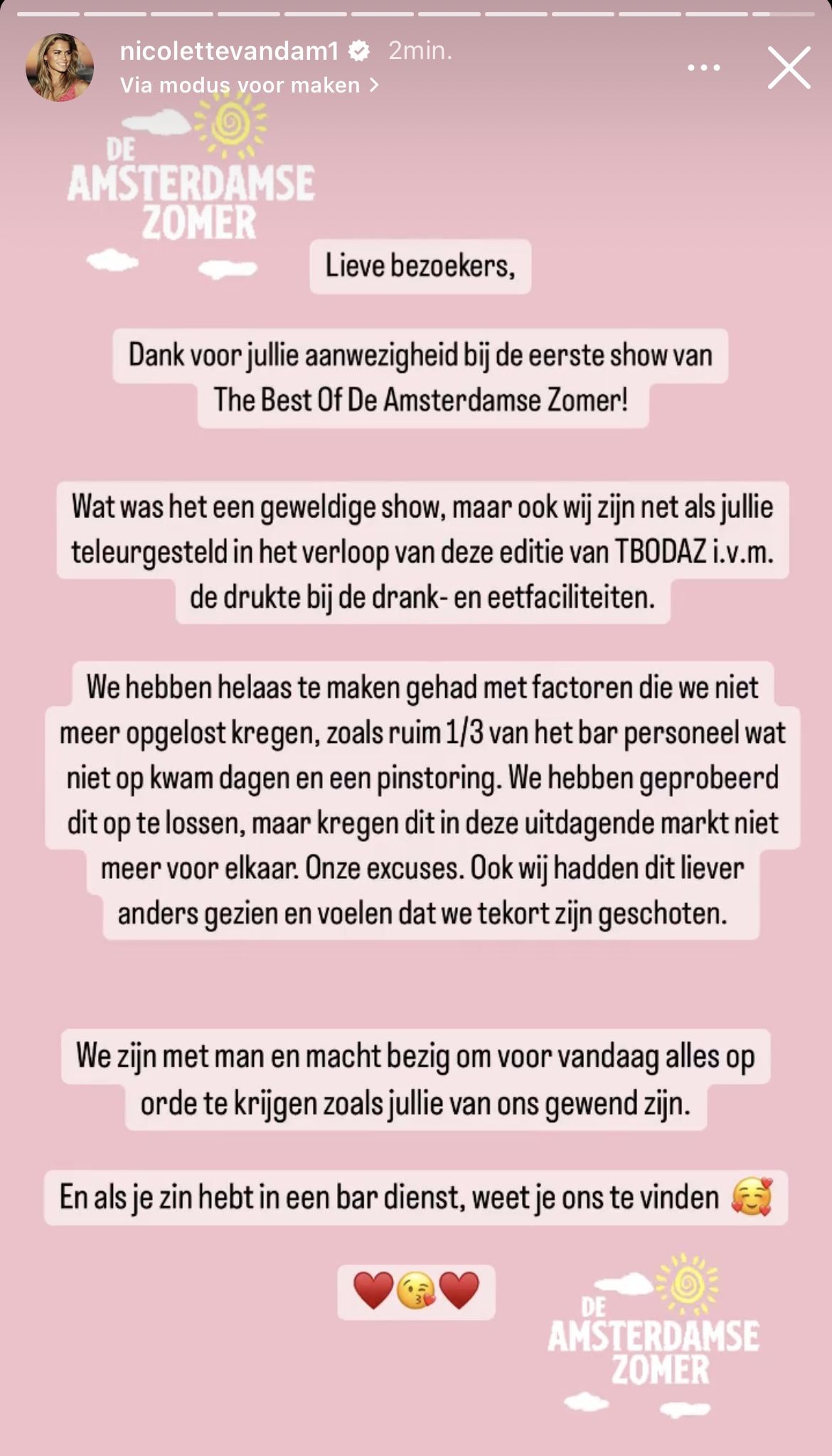 1. In de laatste post op het Instagram-account van De Amsterdamse Zomer wordt aangekondigd dat het een waanzinnige dag wordt.