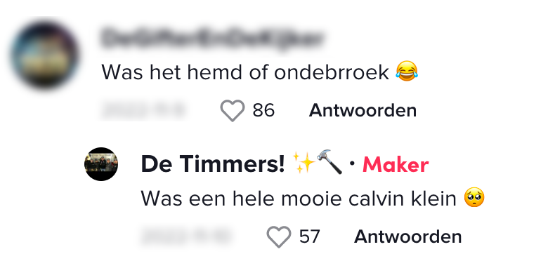 Het maakt niet uit wat voor baan je hebt, maar op de werkvloer moet er altijd ruimte zijn voor wat lol met je collega’s. Deze timmermannen laten dat maar al te goed zien via hun hilarische TikTok-account De Timmers.