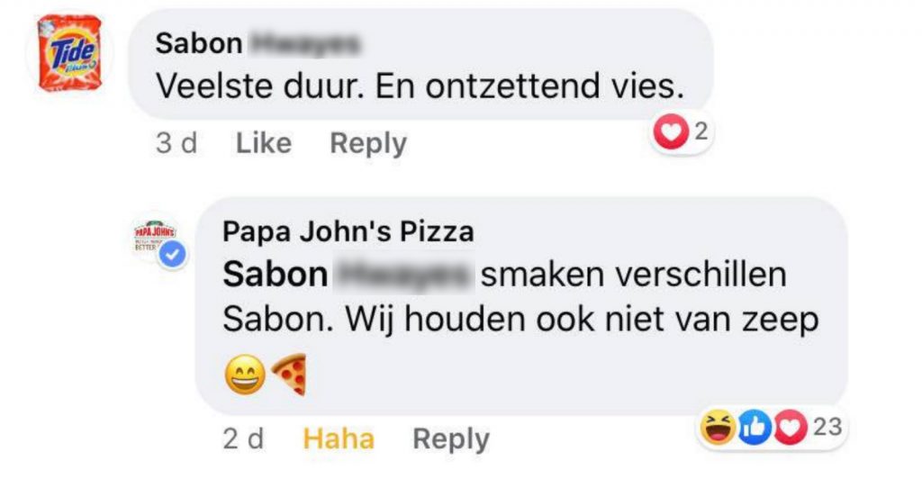 2. De pizzabakkers van Papa Johns weten wel hoe je webcare doet.
