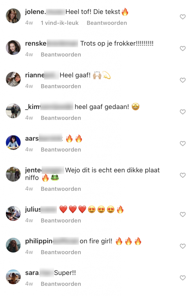 “Ik vind het belangrijk dat er in muziek ook gesproken kan worden over belangrijke onderwerpen. Muziek geeft je letterlijk een stem, sociale media ook. Hoe weet ik nog niet, maar dat is zeker iets wat ik verder wil gaan ontdekken.”