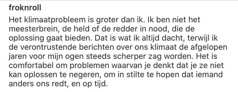 “Tot ik alle posts over de branden in Australië zag. Ik vond het verrassend en fijn om te zien dat anderen daar ook mee bezig zijn en zag een kans om het gesprek verder te openen.”