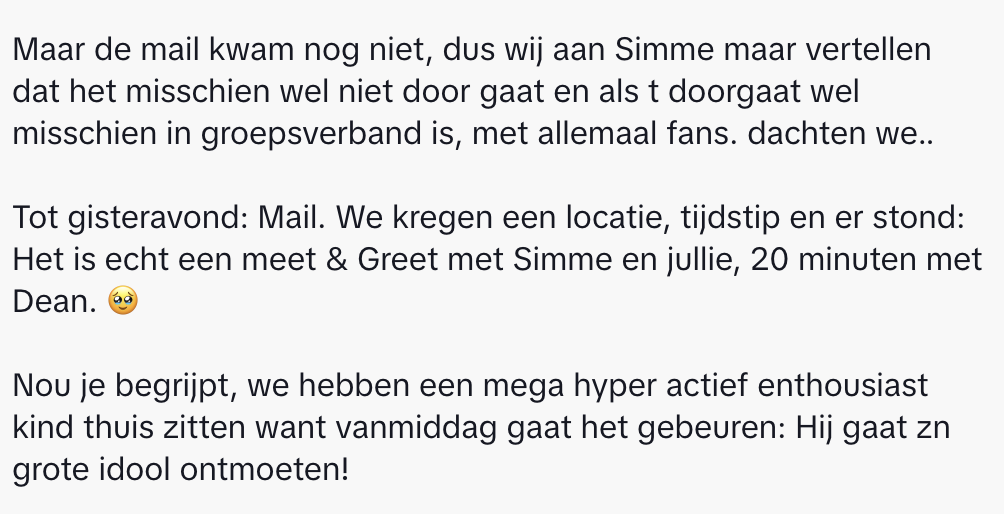 2. Niet veel later kregen de ouders van Simme een nóg grotere verrassing: een bericht van de artiest en zijn team.