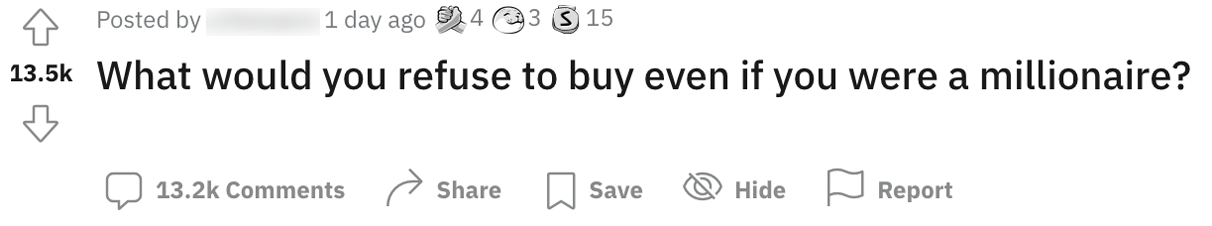 ‘Wat zou jij doen met een miljoen?’ Een vraag die tijdens spelletjes vaak gesteld wordt: wat als we écht in ons geld zouden kunnen zwemmen, net zoals Dagobert Duck? Dan zouden we stoppen met werken, een mooie villa kopen of een leuke reis maken – allemaal voor de hand liggende antwoorden. En precies daarom was een Redditor benieuwd naar wat jij zou weigeren te kopen, zelfs als je een miljonair was.