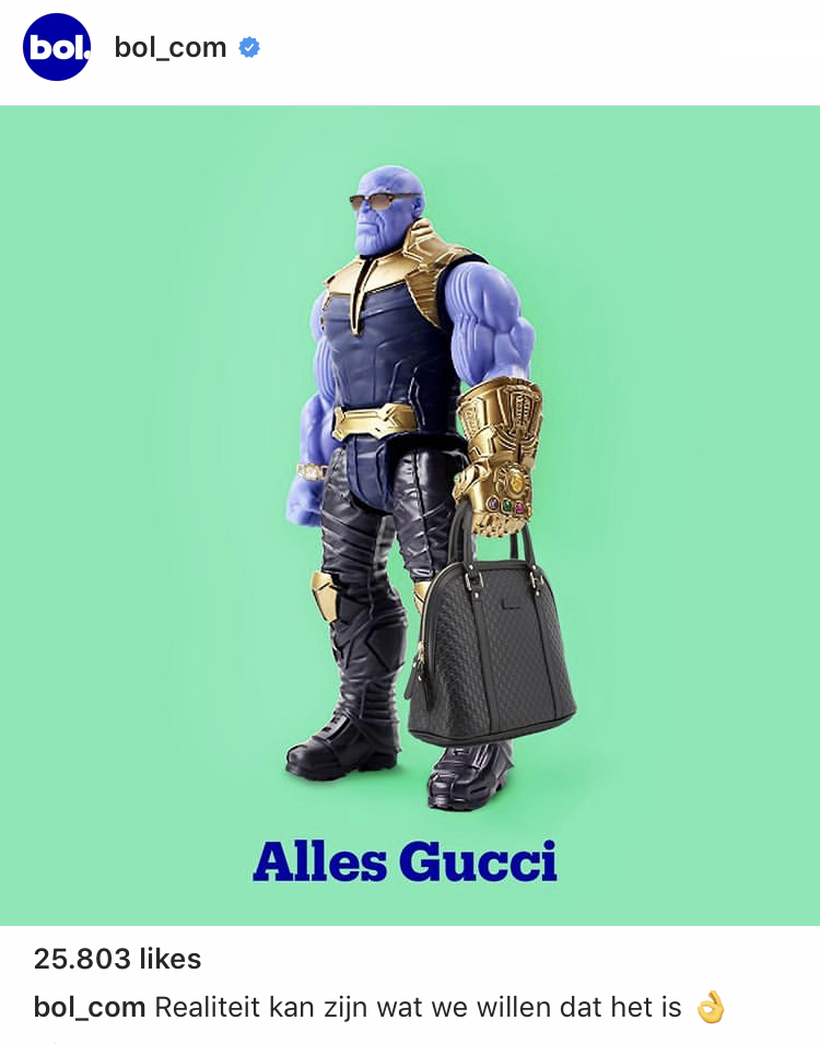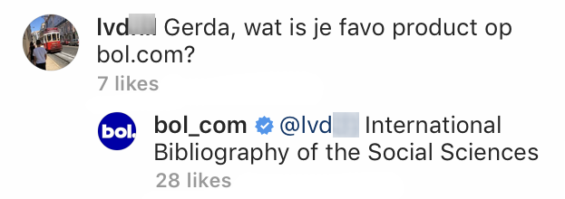 2. Gerda van accounting werd afgelopen jaar als personage geïntroduceerd door bol.com. Inmiddels krijgt Gerda onder elke post de meest uiteenlopende vragen. En gek genoeg weet deze boomer perfect aansluiting te vinden met de jonge doelgroep.