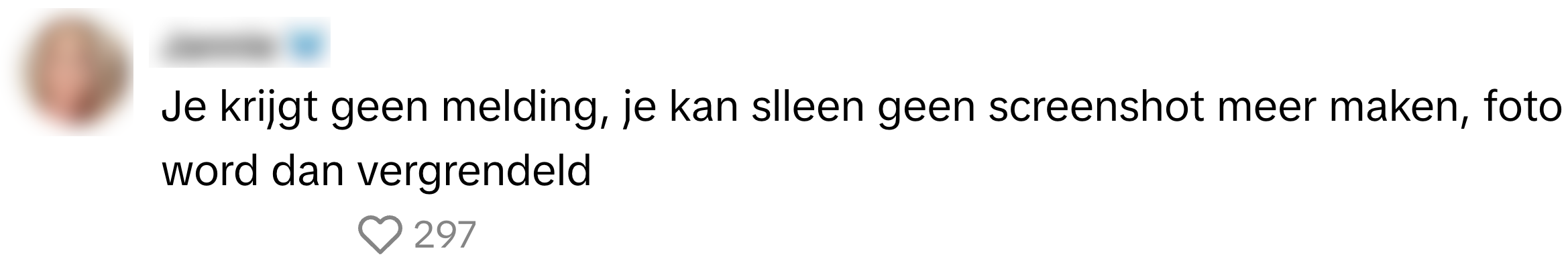 6. Voor iedereen die al uit schaamte in een hutje op de hei ging wonen, geen zorgen: WhatsApp beschermt je nog een klein beetje. Niet de ander maar jij krijgt een melding dat je geen screenshot kan maken.