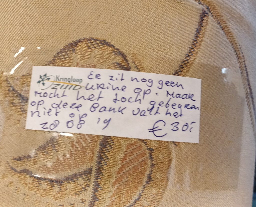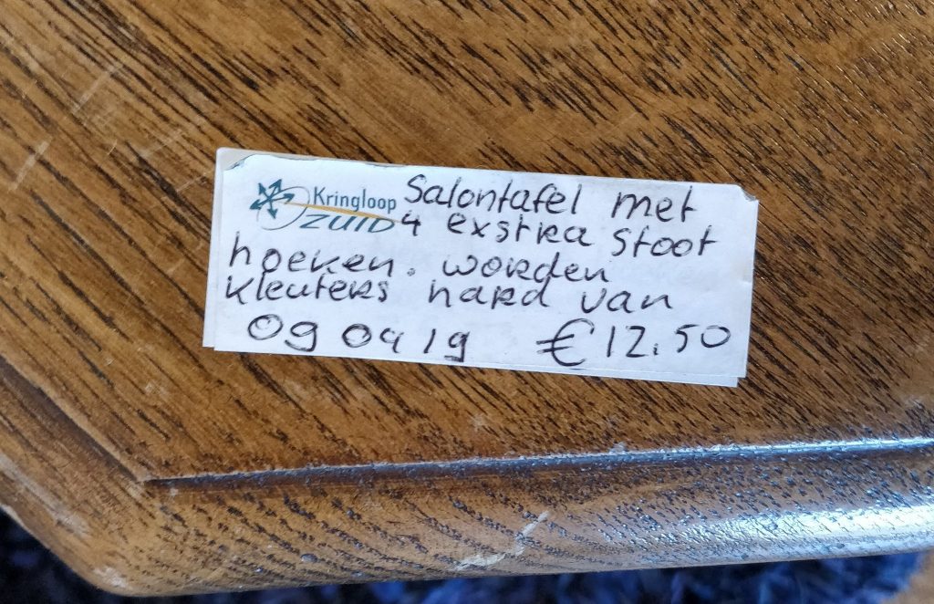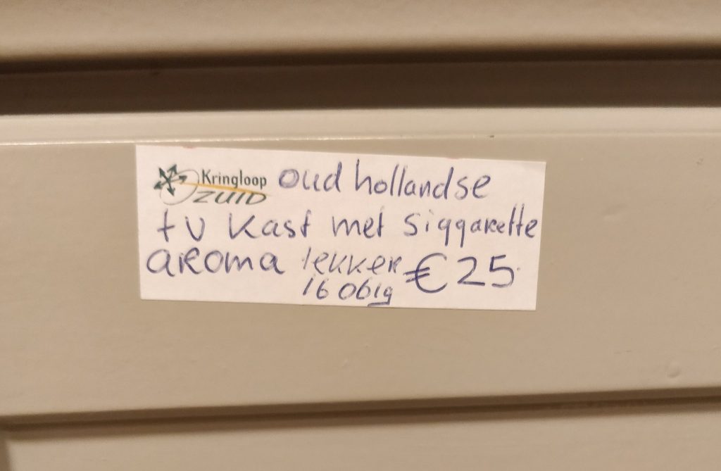 Tuurlijk, er zijn uitzonderingen, maar over het algemeen vind je in een kringloopwinkel niet de mooiste pracht en praal van het land. Prima, niks mis mee. Wellicht dat een verkoper dan ook iets meer zijn best moet doen om zijn voorraad aan de man te brengen. Deze meneer is daar behoorlijk vernuftig in.