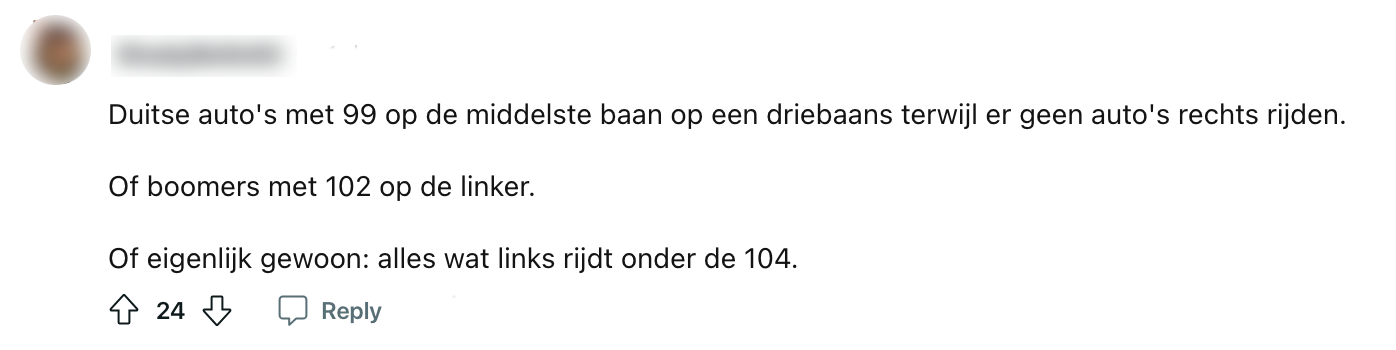 7. Of wat dacht je van Duitsers die het verschil tussen de linker- en rechterbaan niet snappen.