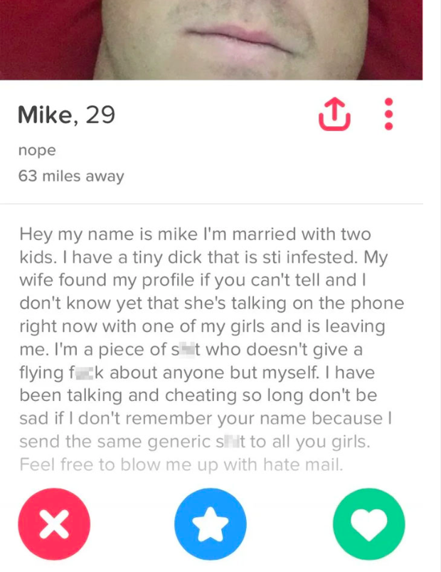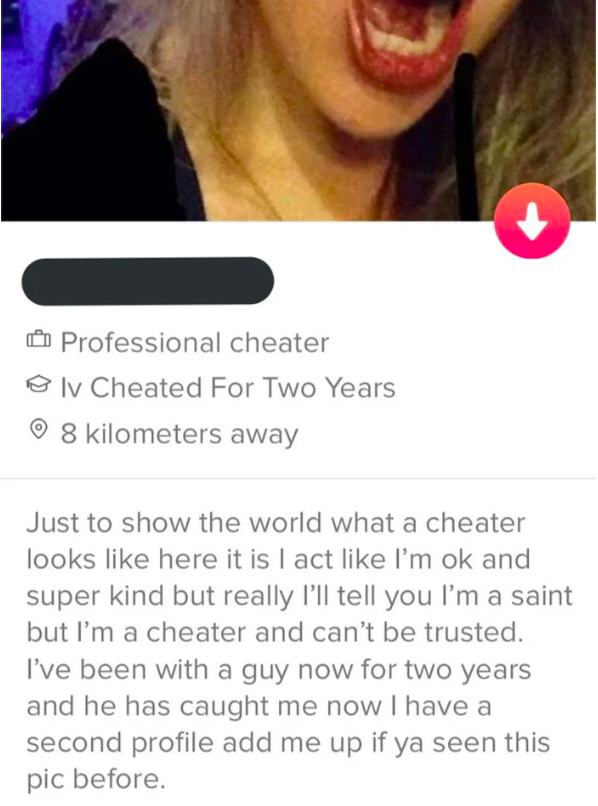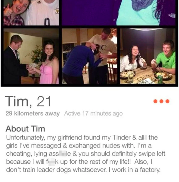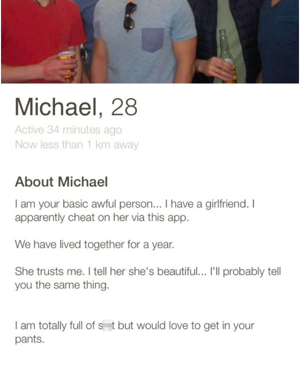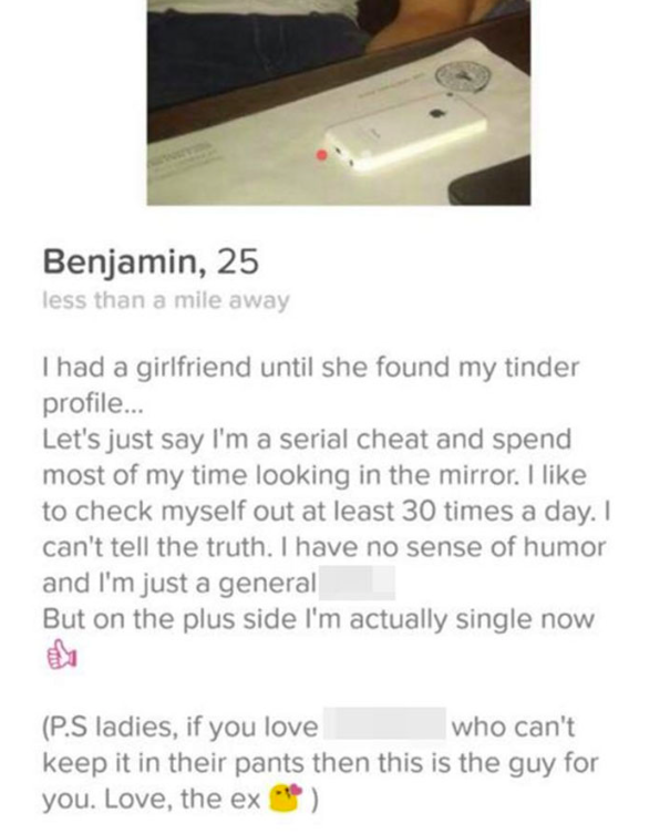 6. Wil je een vreemdganger raken op de plek waar het het meeste zeer doet, slide dan vooral even ongemerkt zijn Tinder bio in.