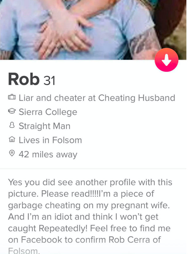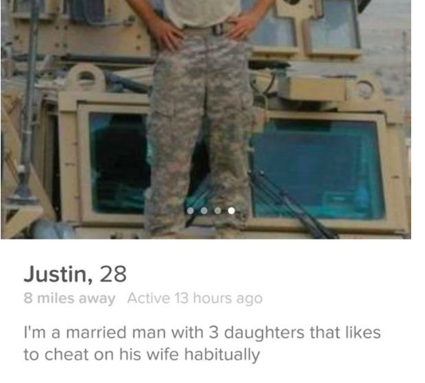 6. Wil je een vreemdganger raken op de plek waar het het meeste zeer doet, slide dan vooral even ongemerkt zijn Tinder bio in.