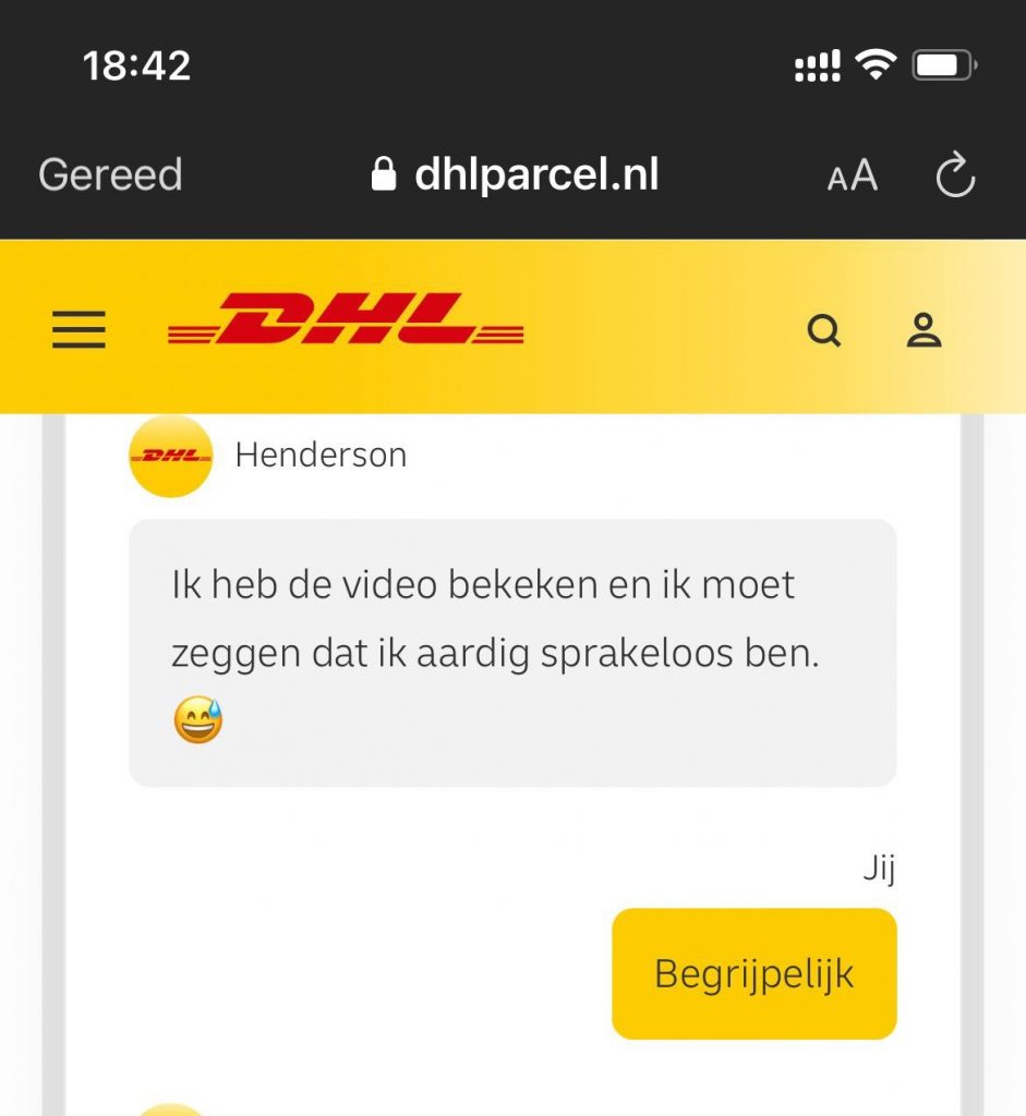 7. Dit is de laatste status-update die we van Rick hebben ontvangen: DHL is (net als iedereen die dit verhaal leest) sprakeloos.