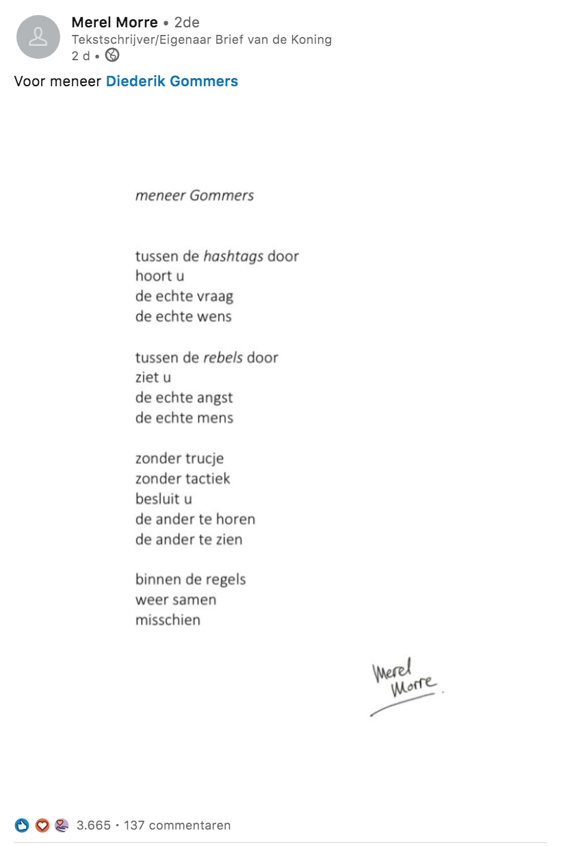 Deze week werd Nederland even door elkaar geschud door #ikdoenietmeermee. Eva Jinek nodigde door alle commotie zowel Famke Louise als Diederik Gommers, voorzitter van de Nederlandse Vereniging voor Intensive Care, uit bij haar talkshow Jinek. Door zijn optreden op de desbetreffende avond, heeft meneer Gommers veel bewondering ontvangen.