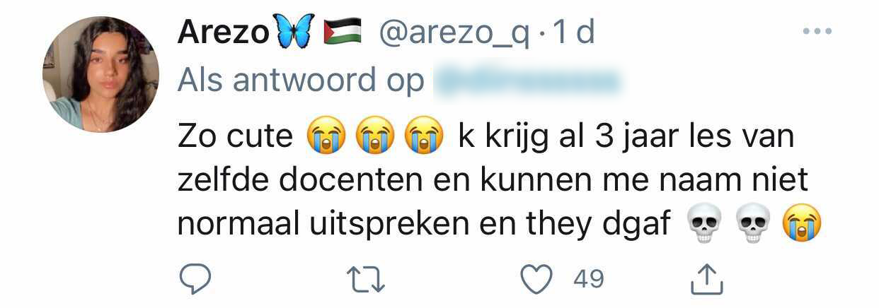 Iemands naam verkeerd uitspreken, het kan de beste overkomen. Vaak wordt er ook niet zo’n probleem van gemaakt, omdat het simpelweg best vaak voorkomt. De docent van Dina sprak haar naam verkeerd uit en besloot zijn excuses aan te bieden aan haar.