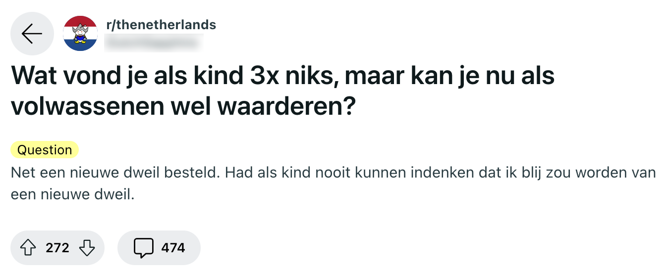 Terwijl je als kind je zin probeert door te drammen door op een oorverdovend volume de supermarkt bij elkaar te krijsen, ga je daar als volwassenen (hopelijk) toch wat anders mee om. En ja, met ons gedrag veranderen natuurlijk ook onze interesses. Tegenwoordig heb je immers wel meer dan een barbiepop nodig om jezelf te vermaken. Daarom vroeg een Reddit-gebruiker naar de dingen die jij als kind helemaal niet kon uitstaan, maar waar je tegenwoordig nogal veel waarde aan hecht.