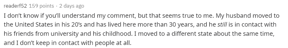 Het komt erop neer dat een Nederlandse man nog steeds contact heeft met zijn vrienden uit zijn jeugd en studietijd, terwijl zijn partner vroegere vrienden niet meer ziet. Hebben we in Nederland dus misschien ‘sterkere’ vriendschappen in plaats van ‘veel’ vriendschappen?