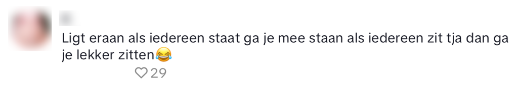 1. Voor Chantal is het duidelijk: zitplekken bij een concert zijn er óók gewoon om te staan.