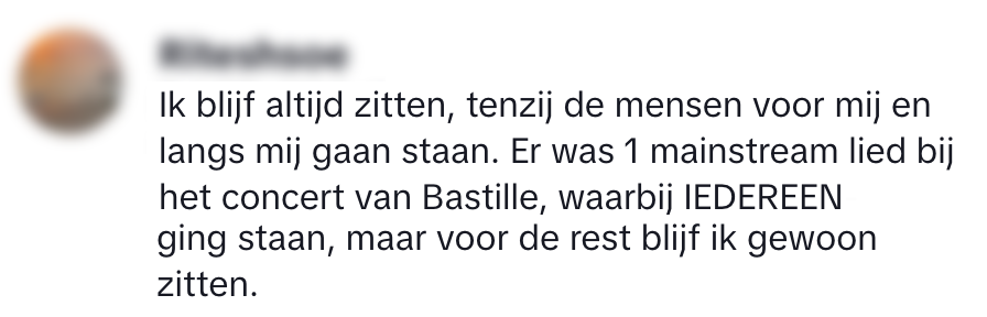 Een zitplaats tijdens een concert heeft veel voordelen. Zo kan je gemakkelijk vijf minuten voor de show komen aankakken, krijg je minder snel vermoeide voeten en hoef je niet urenlang op je tenen te staan om je favoriete artiest te zien. Althans, als de concertbezoekers in de rij voor jou blijven zitten – en dat is lang niet altijd het geval. Duncan en Stijn bespreken in de podcast Relnichten of zij het wel of niet oké vinden om te gaan staan als je een zitplek hebt en mensen in de reacties steken hun mening niet onder (tribune)stoelen of banken.