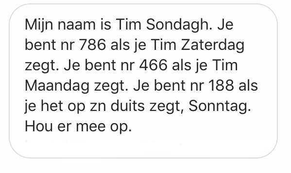 19. Tot slot: het is niet grappig, ook niet op zondag.