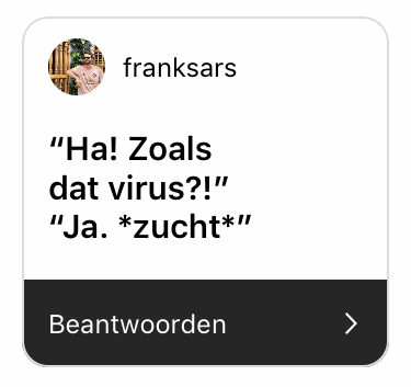 16. Tja die vraag is in de huidige wereld helaas te verwachten.