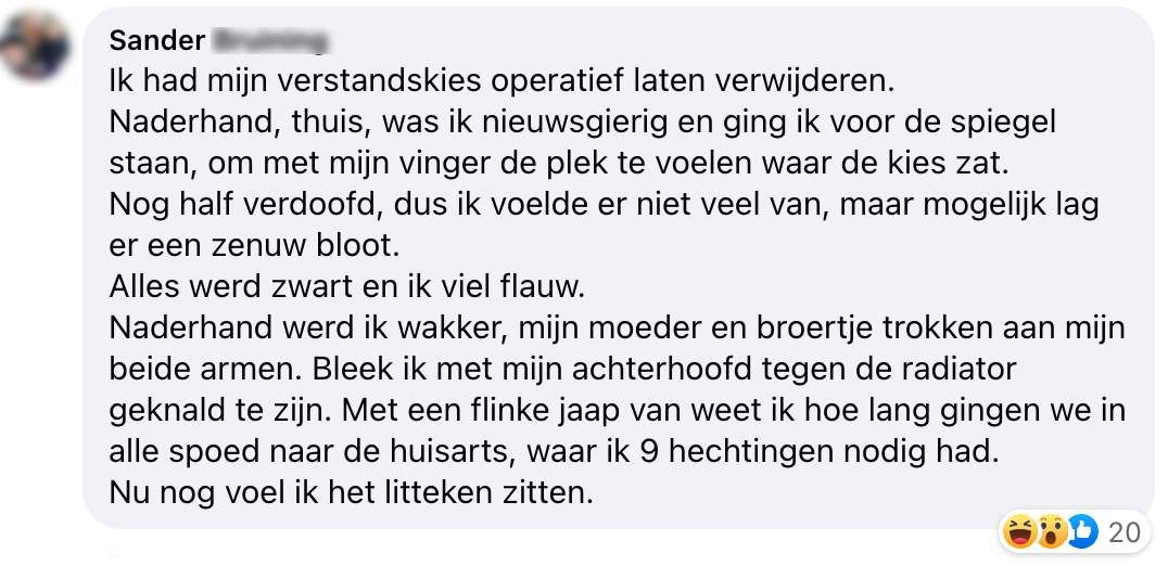 8. Met het verwijderen van zijn verstandskies, verloor Sander ook zijn verstand en raakte hij zijn zenuw aan.