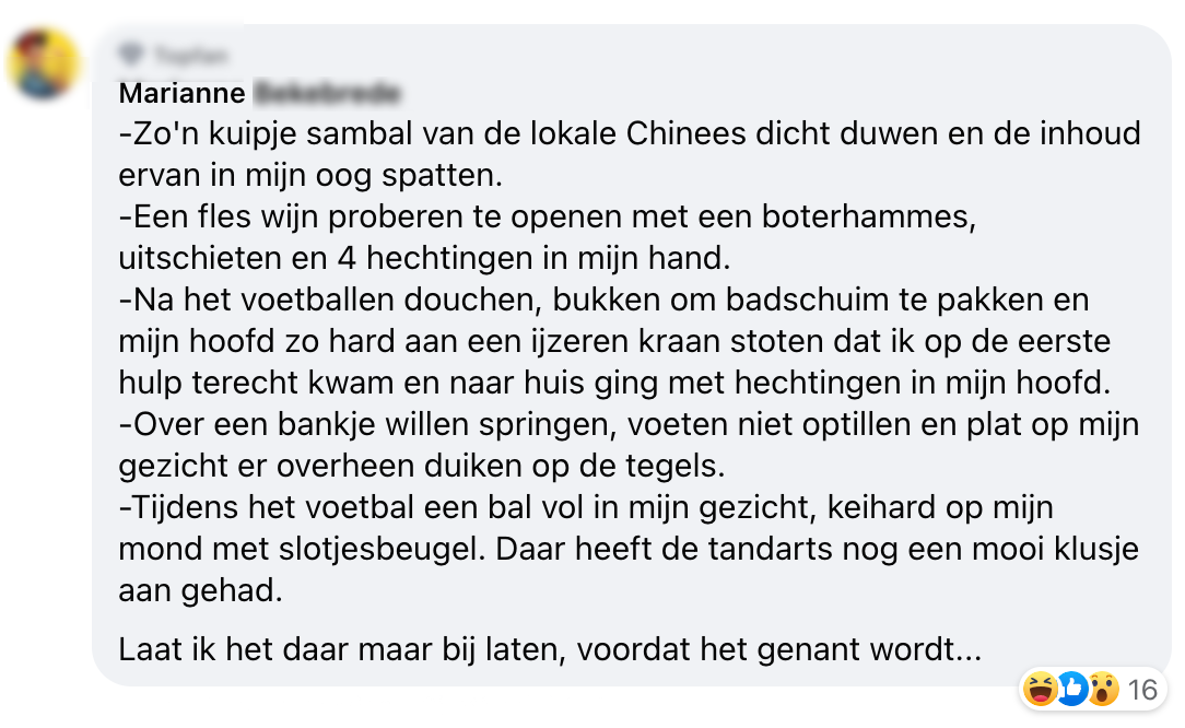 5. Lezer Marianne heeft een heel lijstje aan ongeluksmomenten. Wat een pechvogel.