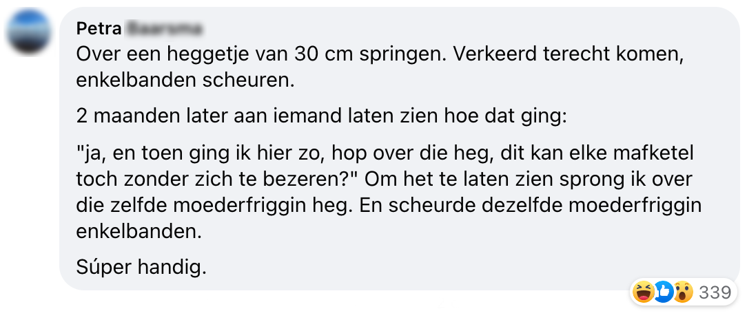 Vorige week plaatsten we dit blog op onze website, waarop tientallen grappige reacties binnenkwamen met jullie domste, grappigste of stomste momenten waarop jullie je bezeerd hebben. Achteraf kunnen we hier natuurlijk hard om lachen. En daarom presenteren wij: jullie 9 grappigste pijnmomenten!