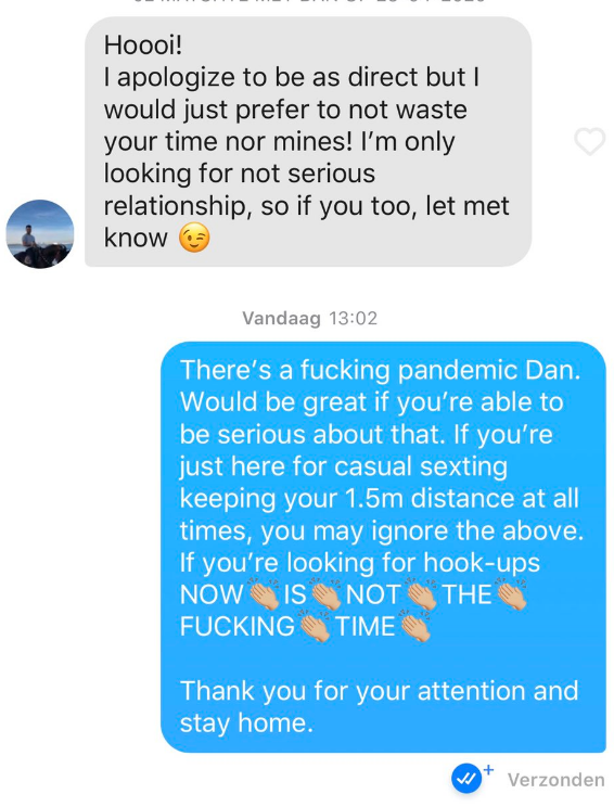 Het is natuurlijk machtig mooi dat zoveel gelukkige partners elkaar hebben ontmoet via Tinder, Happn, Wordfeud en for all we know zelfs via Strava nadat iemand onder de indruk was van de gigantische pielemuis-route die de ander liep. Dus lang leve het digitale tijdperk hè. Alleen is de keerzijde dat we niet kunnen ontkennen dat er ook een hóóp belachelijke benaderingen gebeuren op dagelijkse basis. En op een schaal van 1 tot ‘HOEZO DENK JE DAT DIT OOK MAAR MISSCHIEN WERKT’, hebben we een selectie. Dus kijk en leer hoe het niet moet.