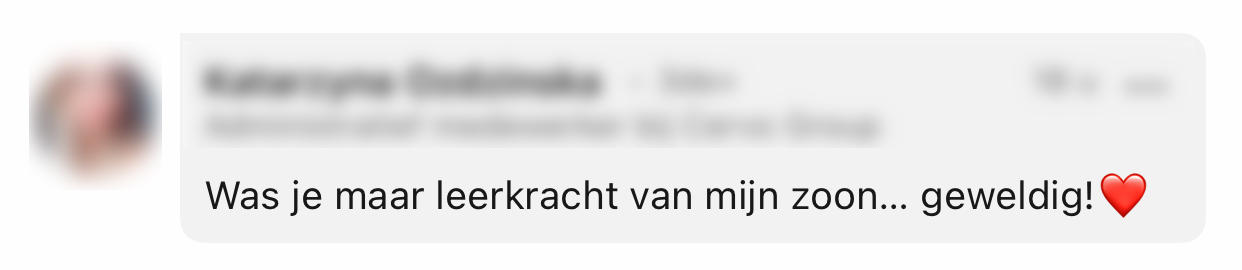Petra is docente en krijgt op een zondagochtend een WhatsAppbericht van een leerling die aangeeft vast te lopen met het huiswerk. Ze gaat met de leerling in gesprek en het kind blijkt uiteindelijk weinig hulp nodig te hebben. Petra deelt het gesprek op LinkedIn en ontvangt veel lof voor haar aanpak.