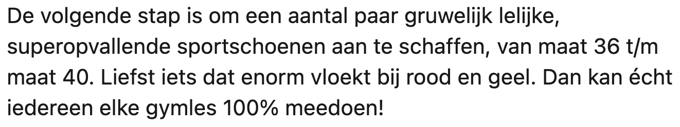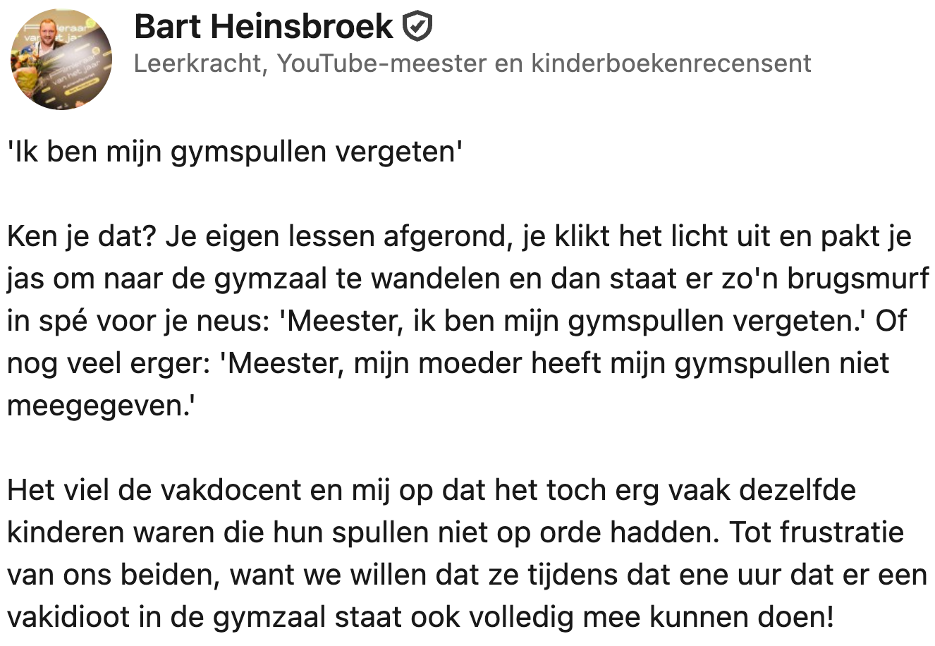 6. Bart maakt er een sport van om leerlingen hun gymspullen niet meer te laten vergeten.