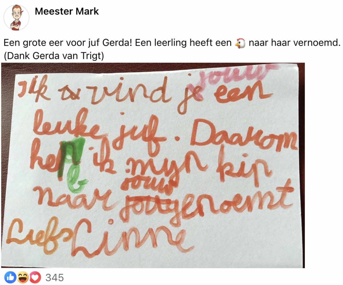 10. Leerlingen zijn er uiteraard als de kippen bij om hun docent te bedanken.