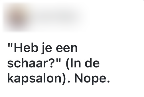 8. “Een schaar?! Wij gebruiken geen scharen in de kapsalon.”